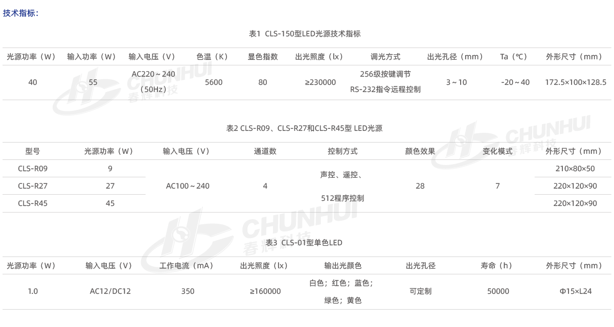 CLS-R09、CLS-R27和CLS-R45型 LED光源無噪音,輸出色豐富,混色均勻;
